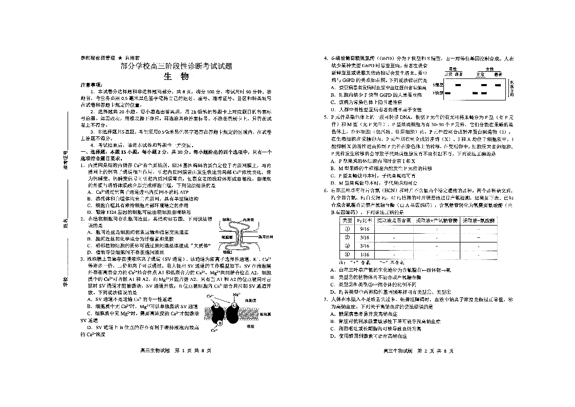 7山东省淄博市2023.4高三年级第二次模拟考试生物