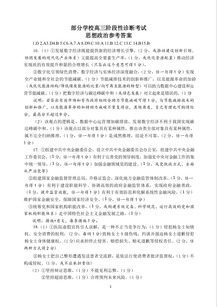 8山东省淄博市2023.4高三年级第二次模拟考试政治答案