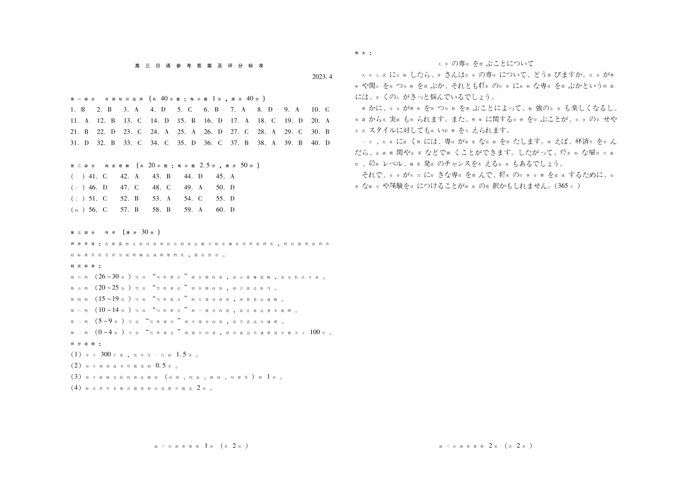 4山东省潍坊市2023.4高三年级第二次模拟考试日语答案