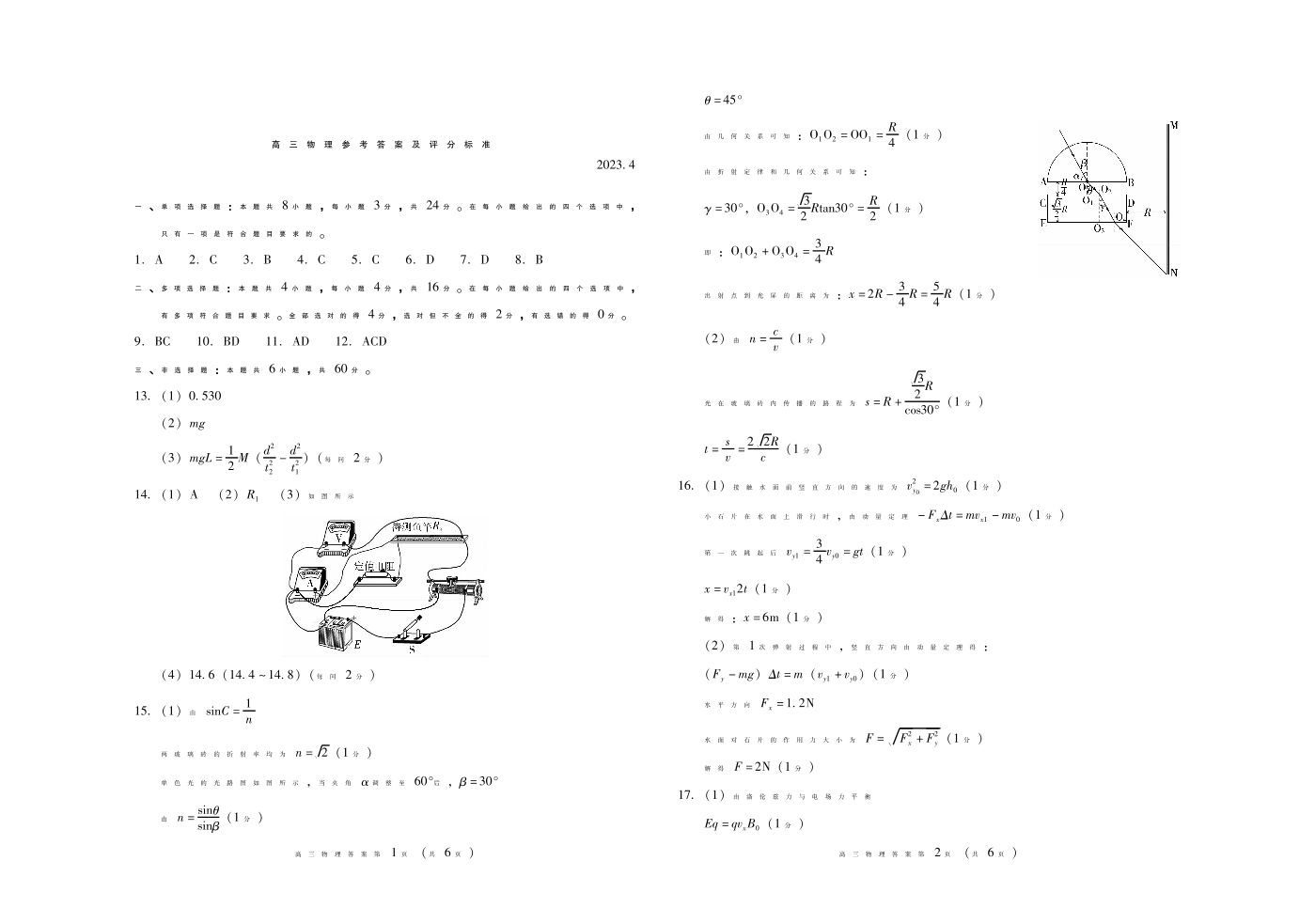 5山东省潍坊市2023.4高三年级第二次模拟考试物理答案