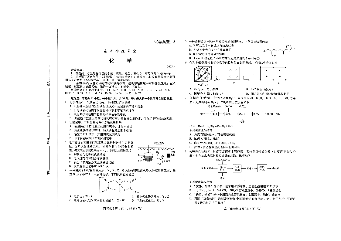 6山东省潍坊市2023.4高三年级第二次模拟考试化学