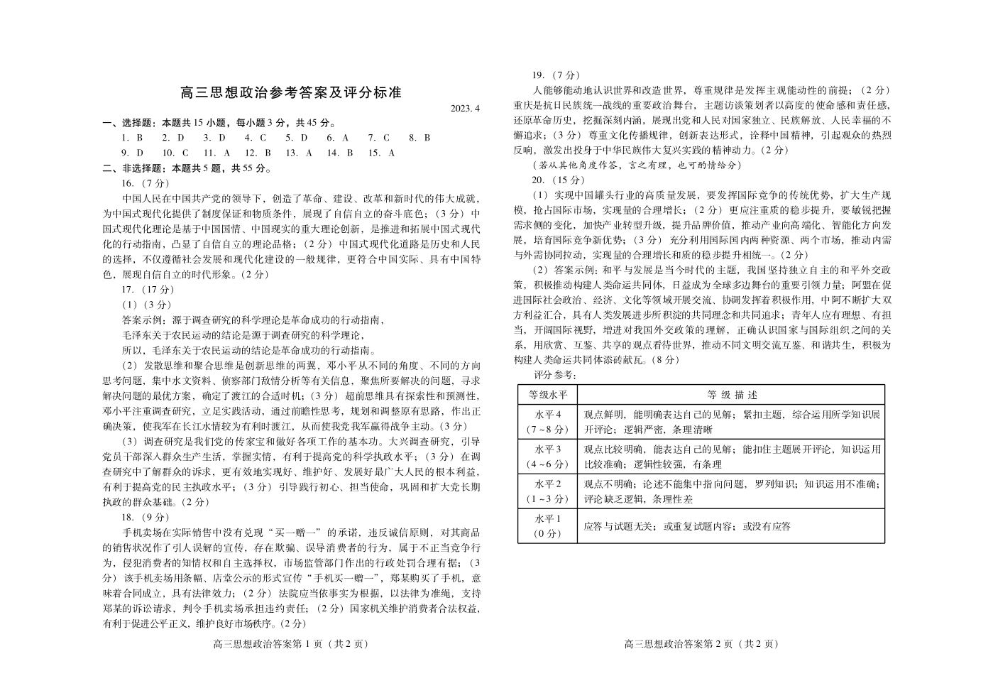8山东省潍坊市2023.4高三年级第二次模拟考试政治答案