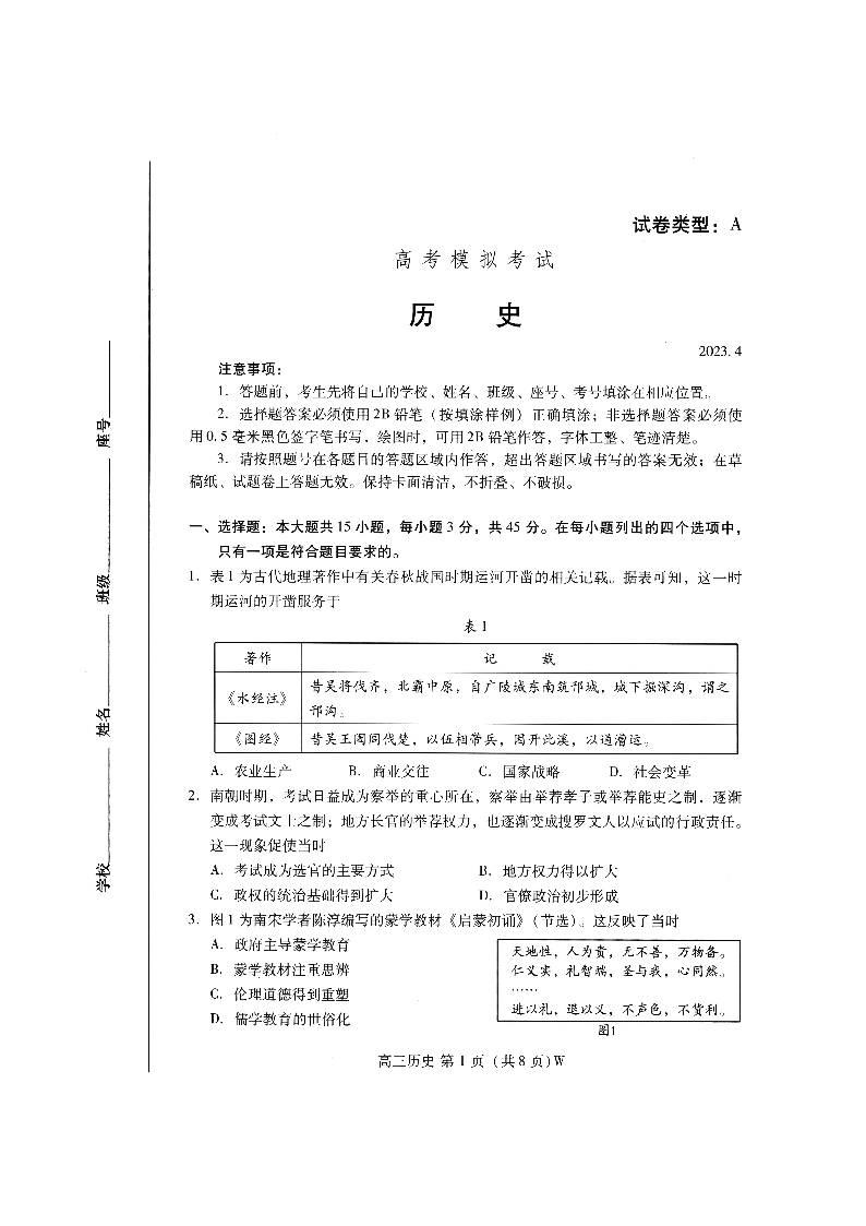 9山东省潍坊市2023.4高三年级第二次模拟考试历史