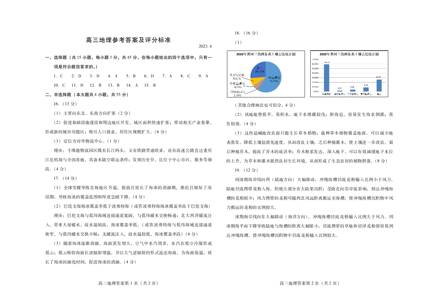 10山东省潍坊市2023.4高三年级第二次模拟考试地理答案