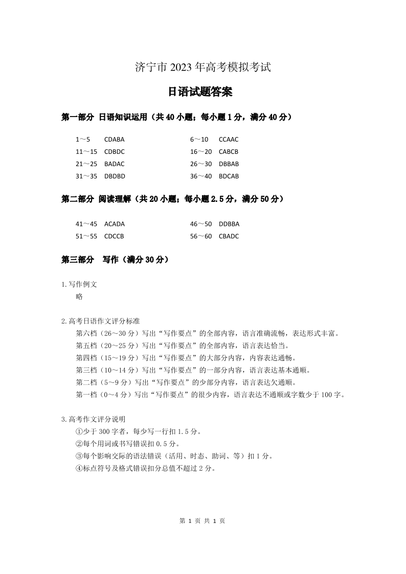 4山东省济宁市2023.4高三年级第二次模拟考试日语答案