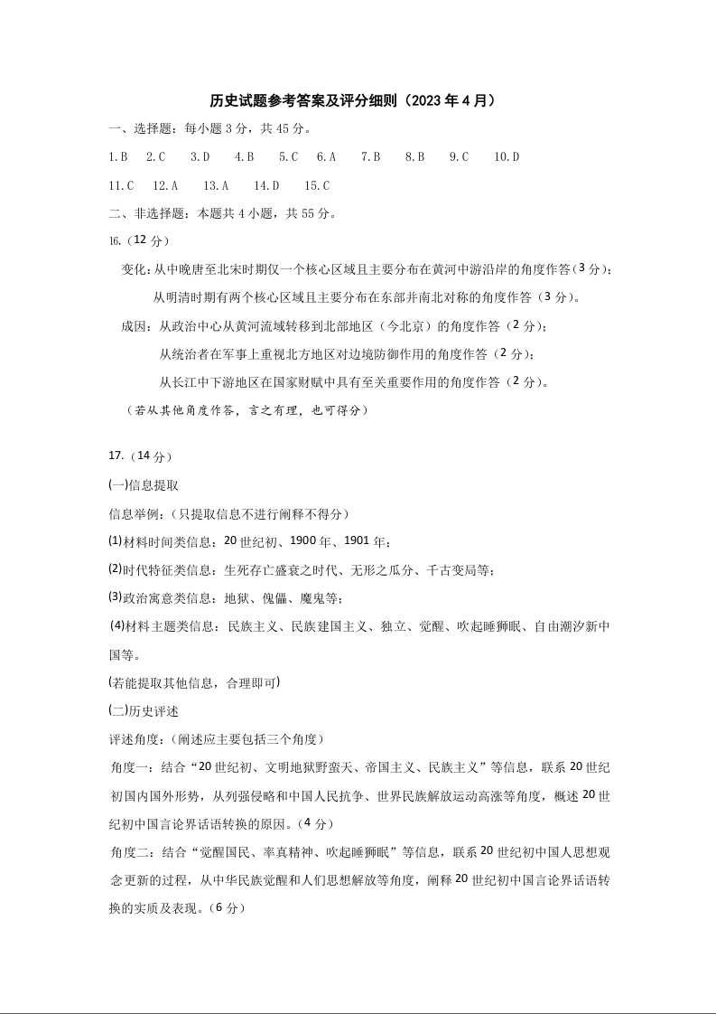 山东省济宁市2023.4高三年级第二次模拟考试历史答案