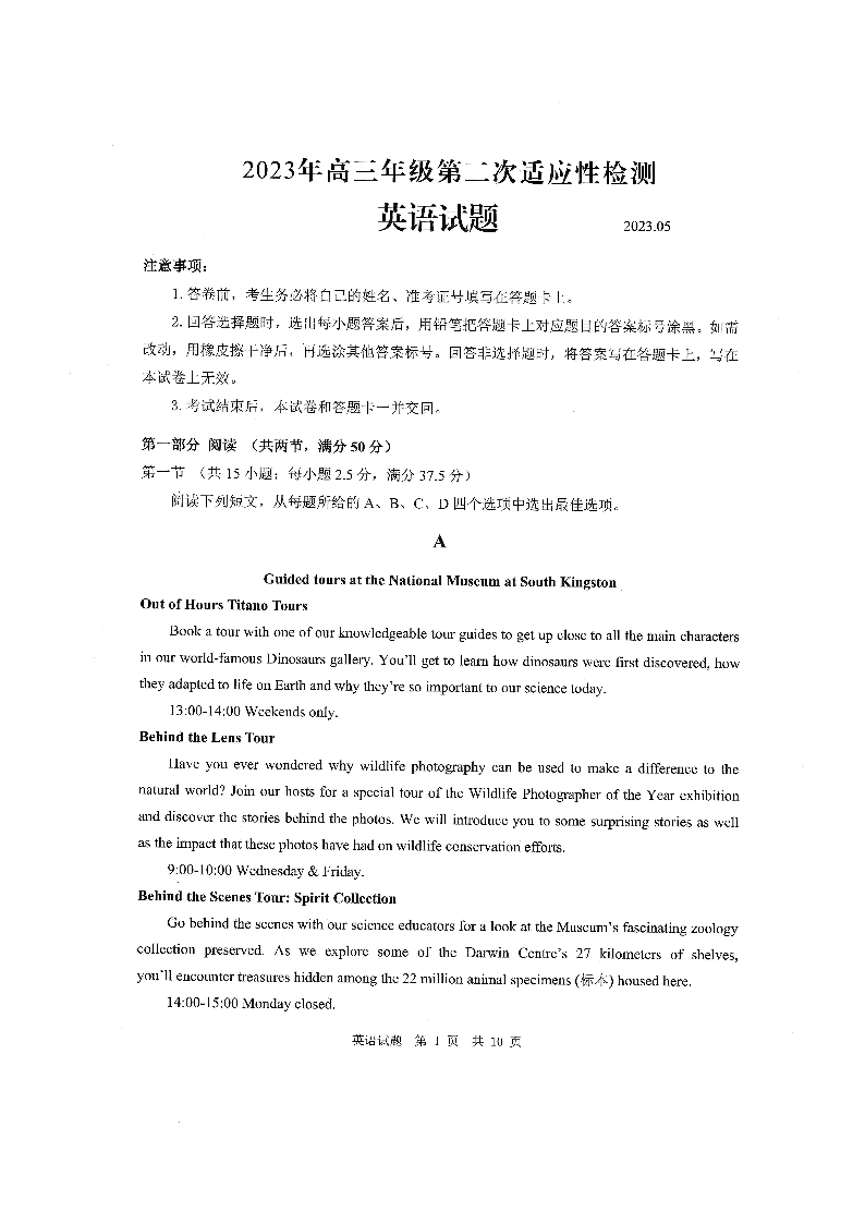 3山东省青岛市2023.5高三年级第二次模拟考试英语
