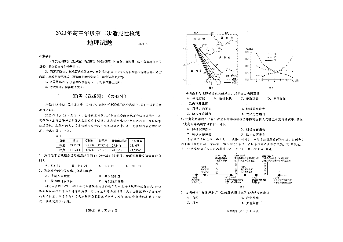 山东省青岛市2023.5高三年级第二次模拟考试地理