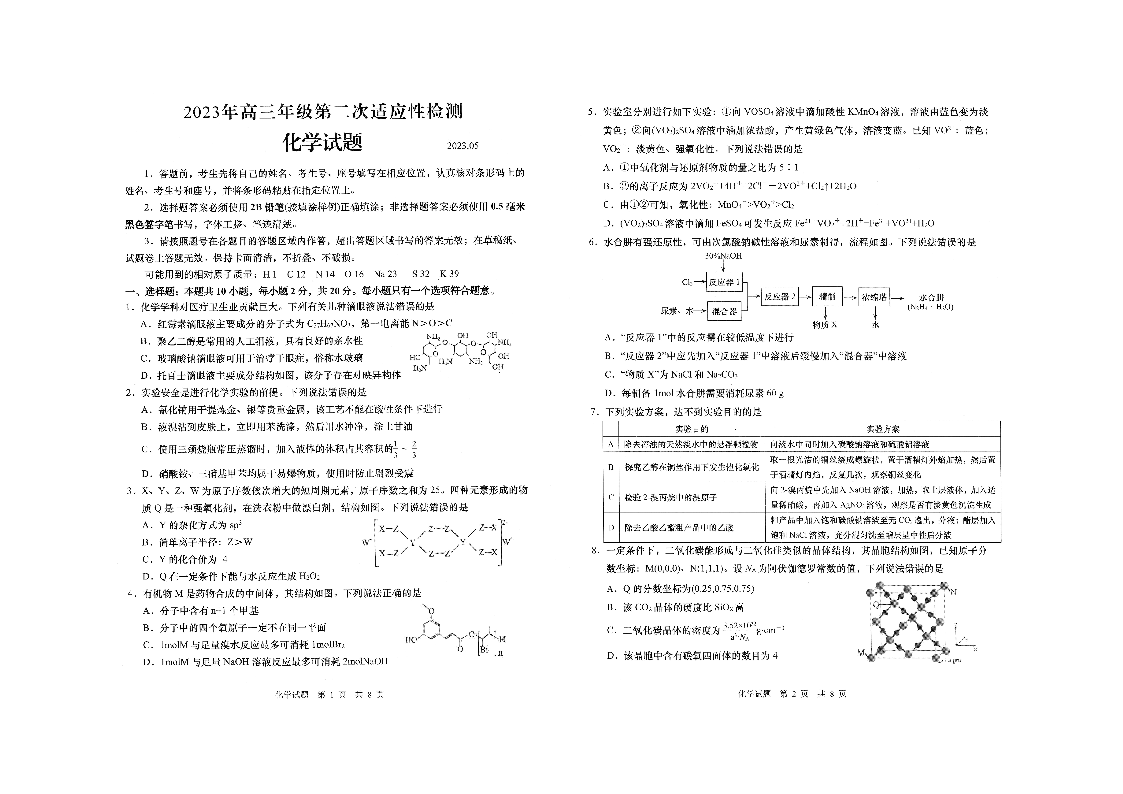 山东省青岛市2023.5高三年级第二次模拟考试化学