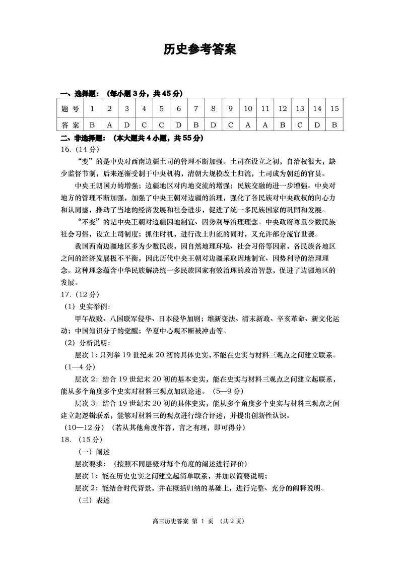 山东省青岛市2023.5高三年级第二次模拟考试历史答案