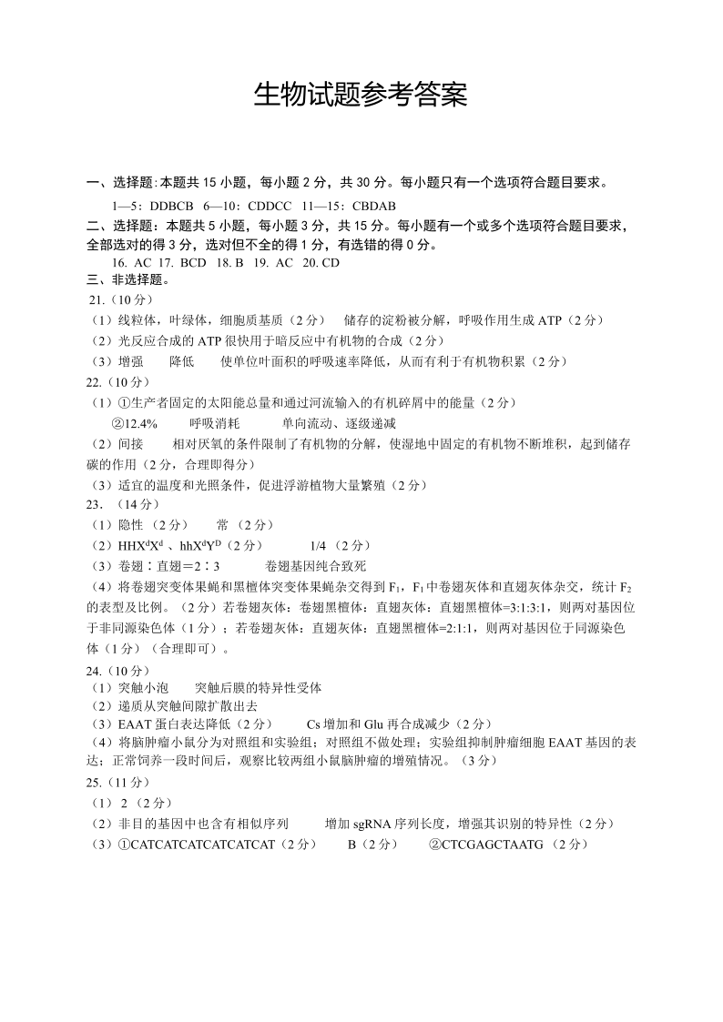 山东省青岛市2023.5高三年级第二次模拟考试生物答案