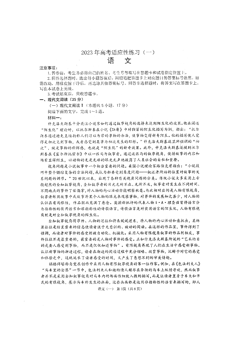 1山东省烟台市2023.5高三年级第二次模拟考试语文