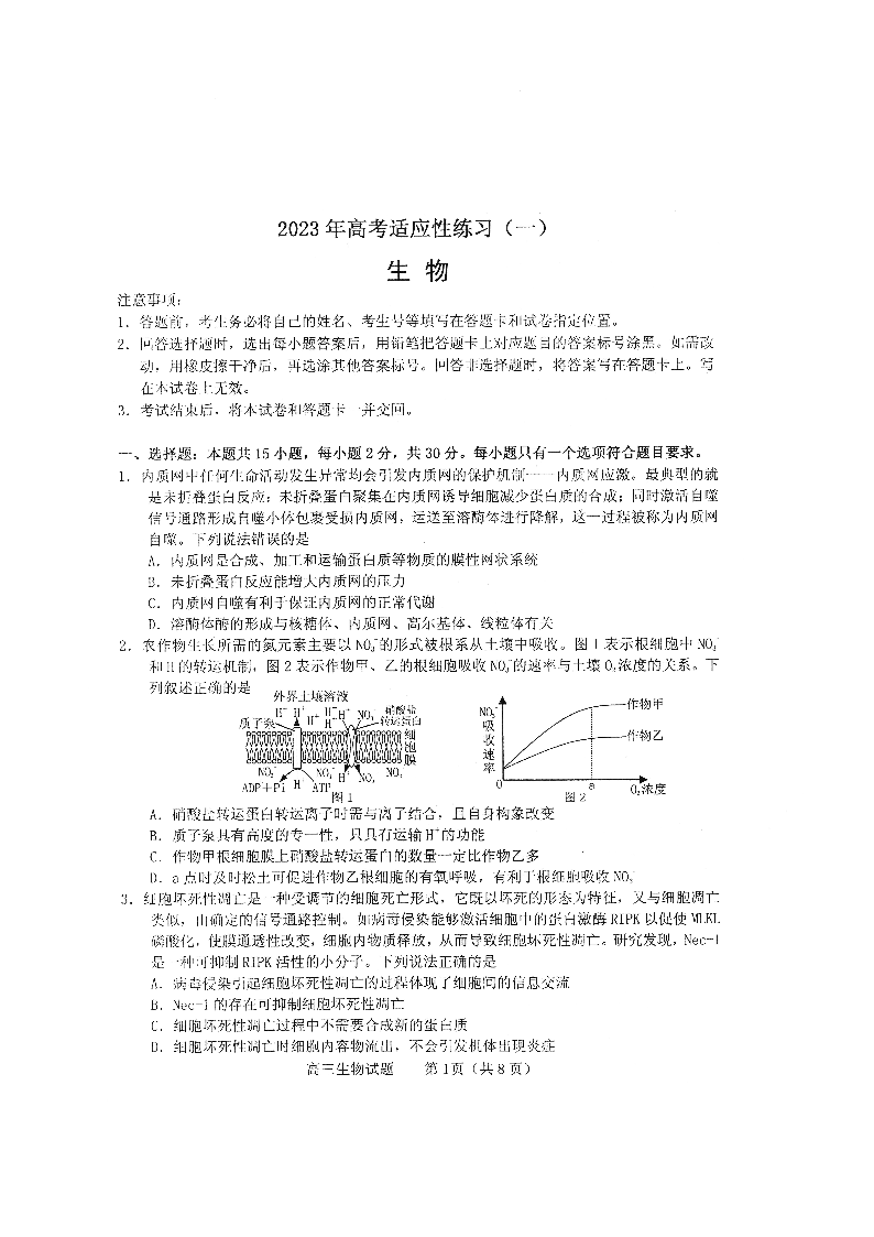 山东省烟台市2023.5高三年级第二次模拟考试生物