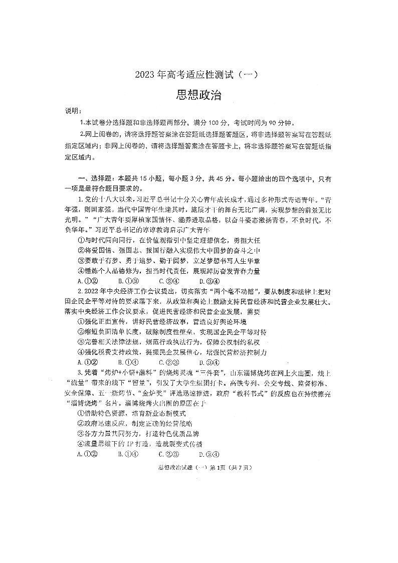 山东省烟台市2023.5高三年级第二次模拟考试政治