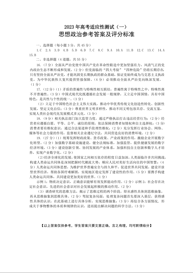 山东省烟台市2023.5高三年级第二次模拟考试政治答案