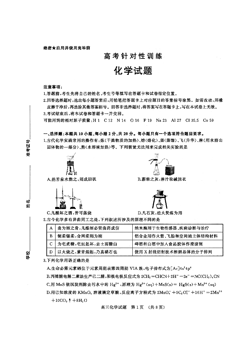 山东省济南市2023.5高三年级第三次模拟考试化学