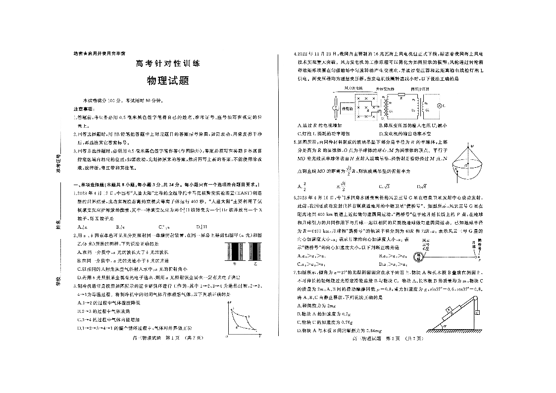 山东省济南市2023.5高三年级第三次模拟考试物理