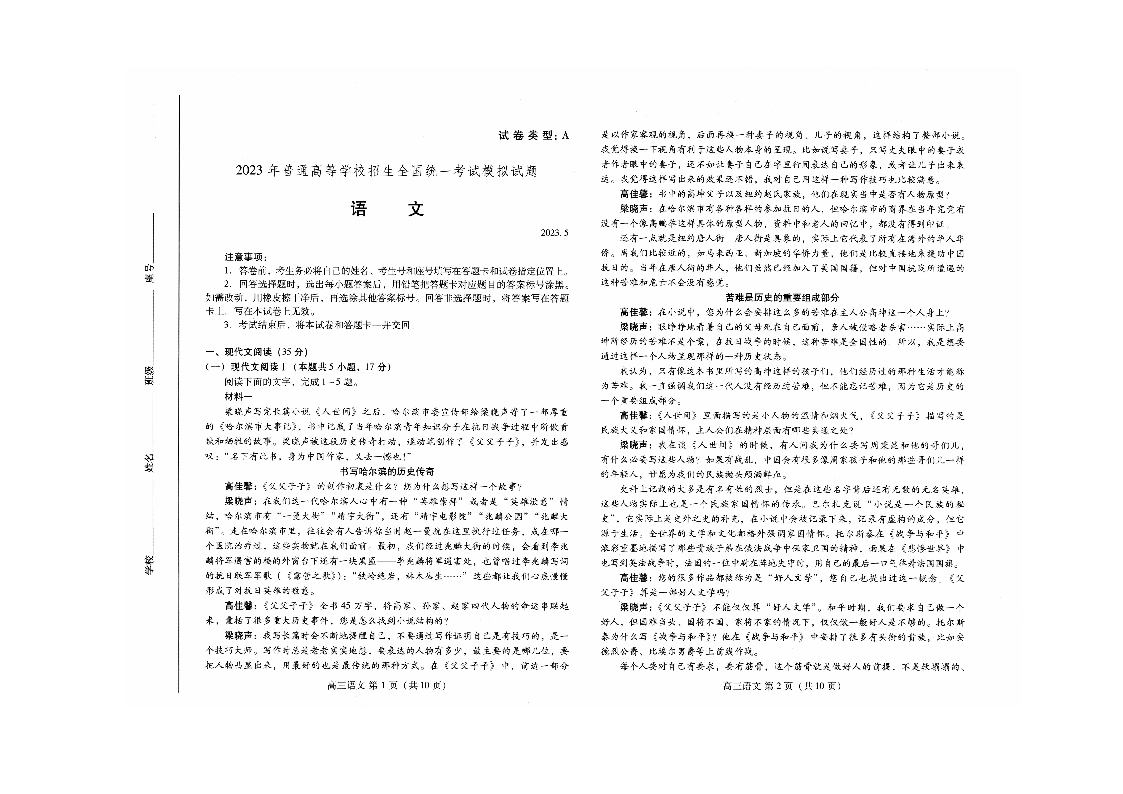 1山东省潍坊市2023.5高三年级第三次模拟考试语文