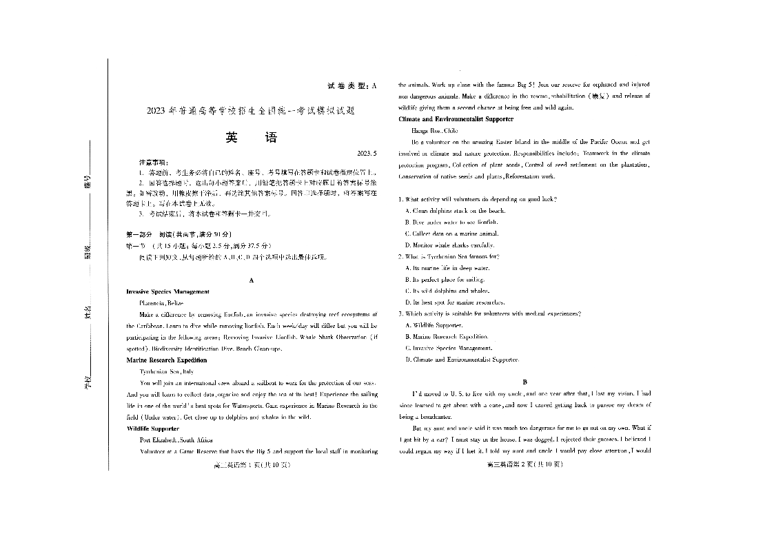 3山东省潍坊市2023.5高三年级第三次模拟考试英语