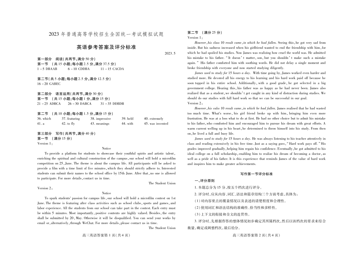 3山东省潍坊市2023.5高三年级第三次模拟考试英语答案