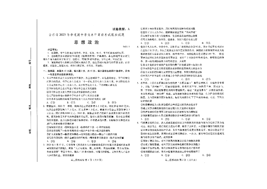 山东省潍坊市2023.5高三年级第三次模拟考试政治