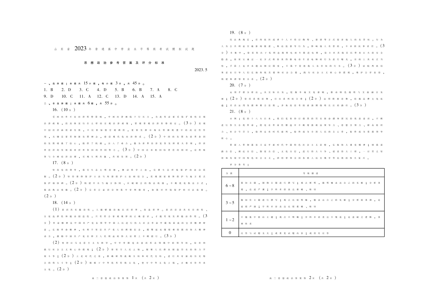 山东省潍坊市2023.5高三年级第三次模拟考试政治答案
