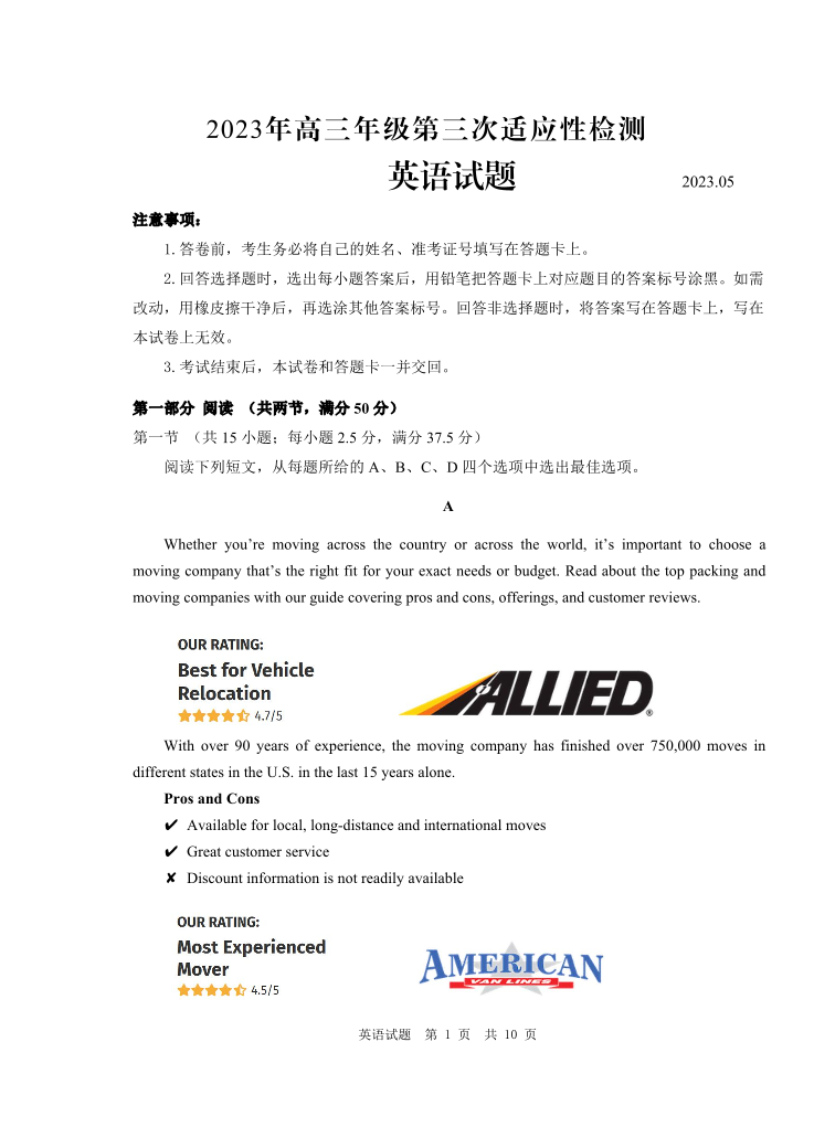 3山东省青岛市2023.5高三年级第三次模拟考试英语