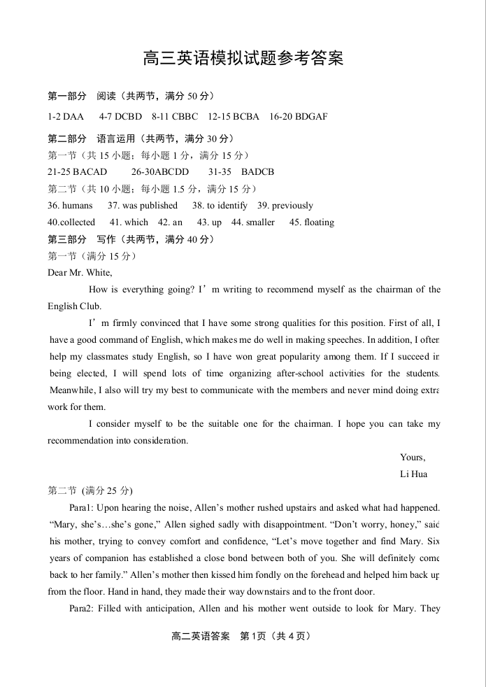 3山东省潍坊市区域2023.6高三年级考前模拟热身英语答案