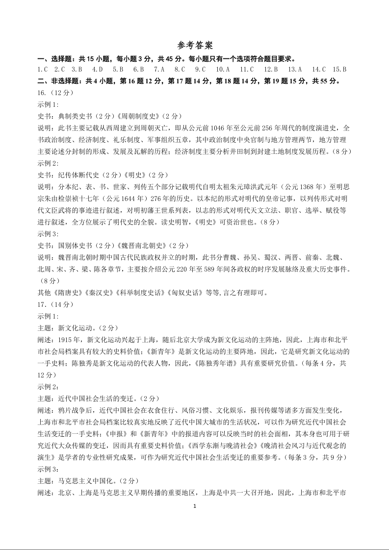山东省潍坊市区域2023.6高三年级考前模拟热身历史答案