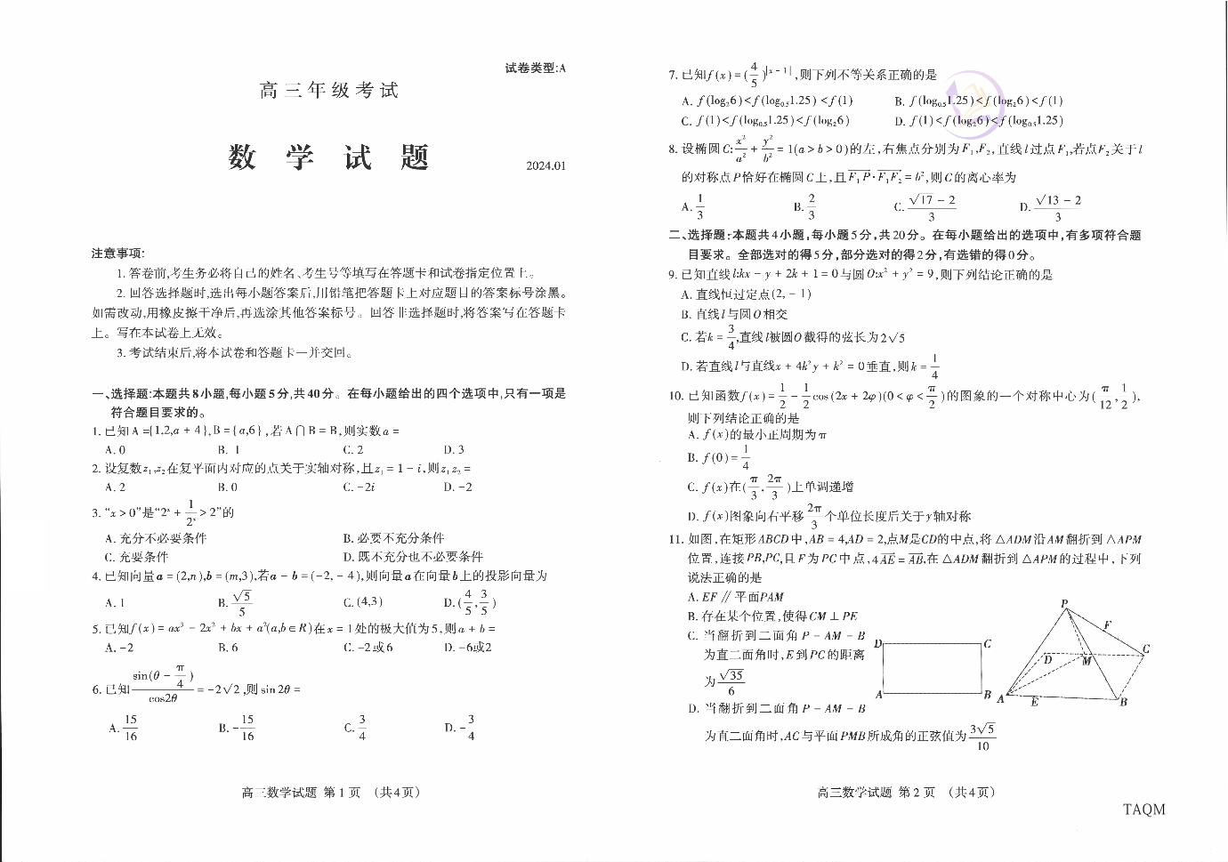 2山东省泰安市2024.1高三年级期末考试数学