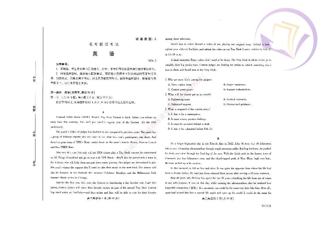 3山东省潍坊市2024.3高三年级第一次模拟英语