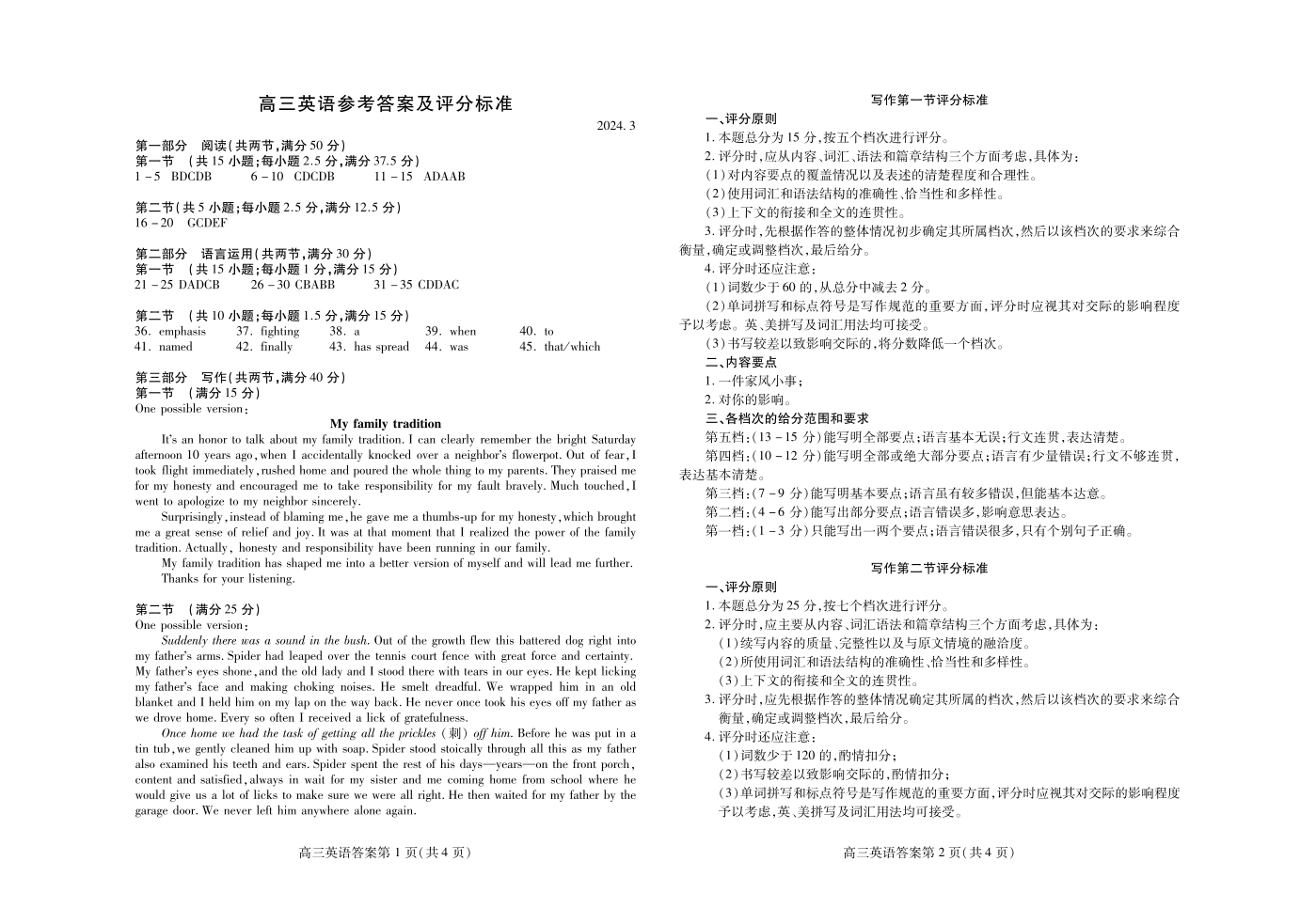 3山东省潍坊市2024.3高三年级第一次模拟英语答案