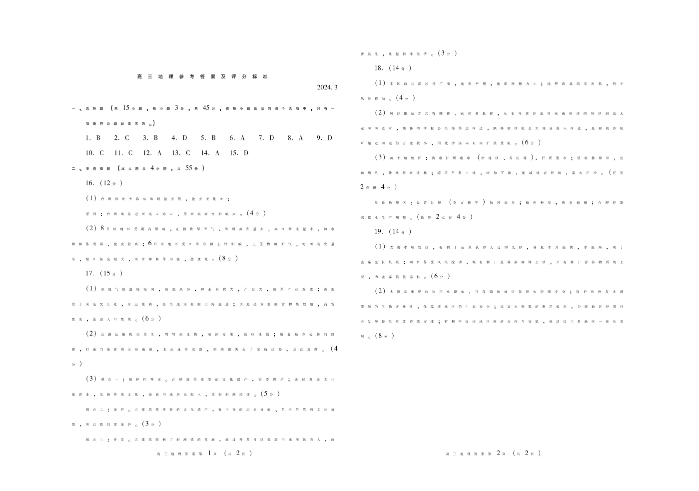 山东省潍坊市2024.3高三年级第一次模拟地理答案