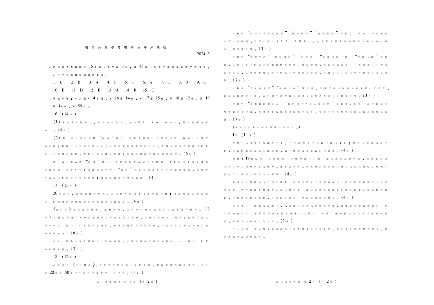 山东省潍坊市2024.3高三年级第一次模拟历史答案