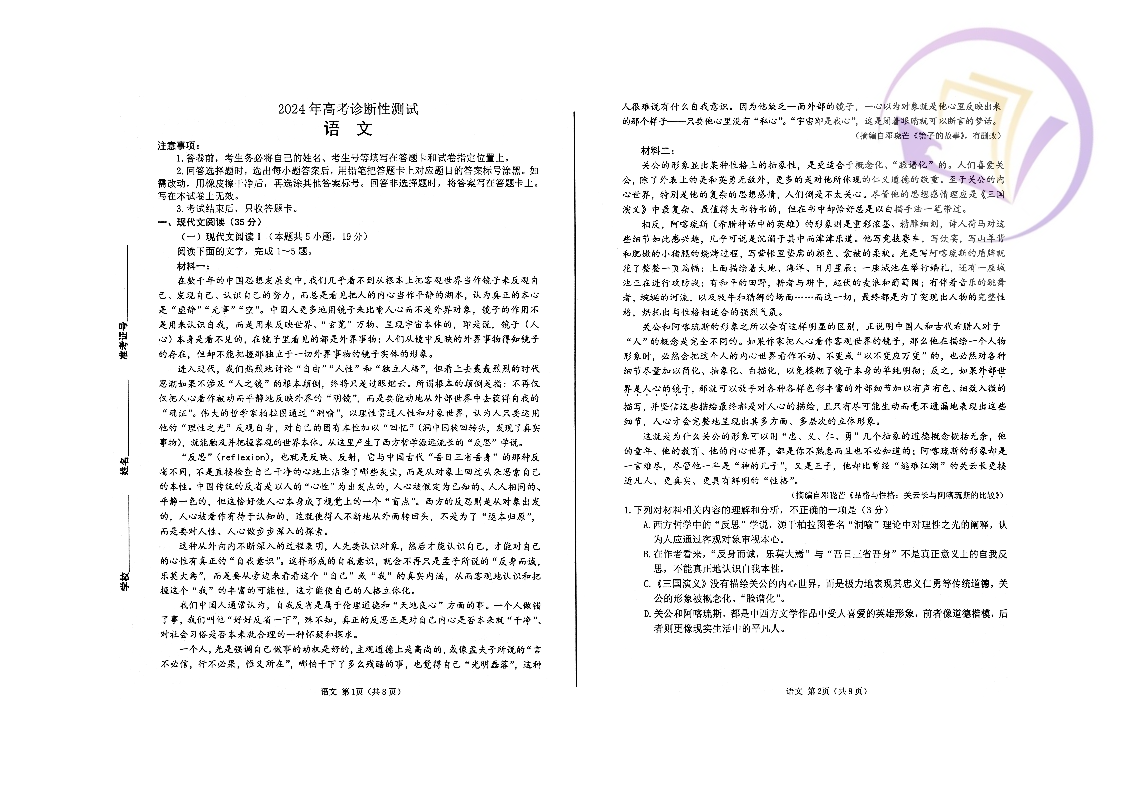 1山东省烟台市2024.3高三年级第一次模拟语文
