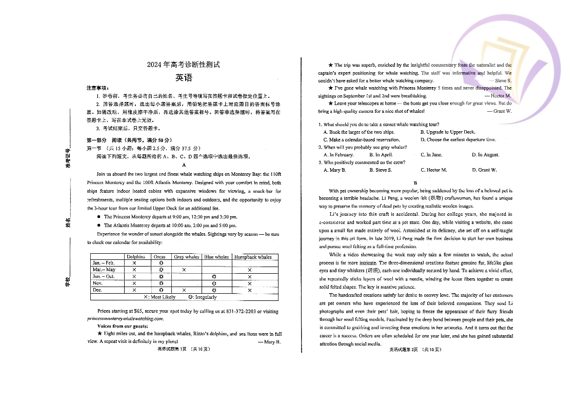 3山东省烟台市2024.3高三年级第一次模拟英语