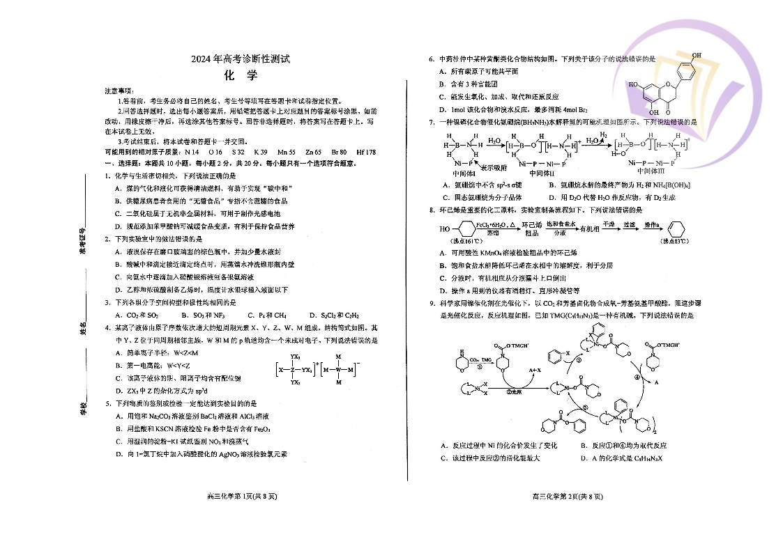山东省烟台市2024.3高三年级第一次模拟化学