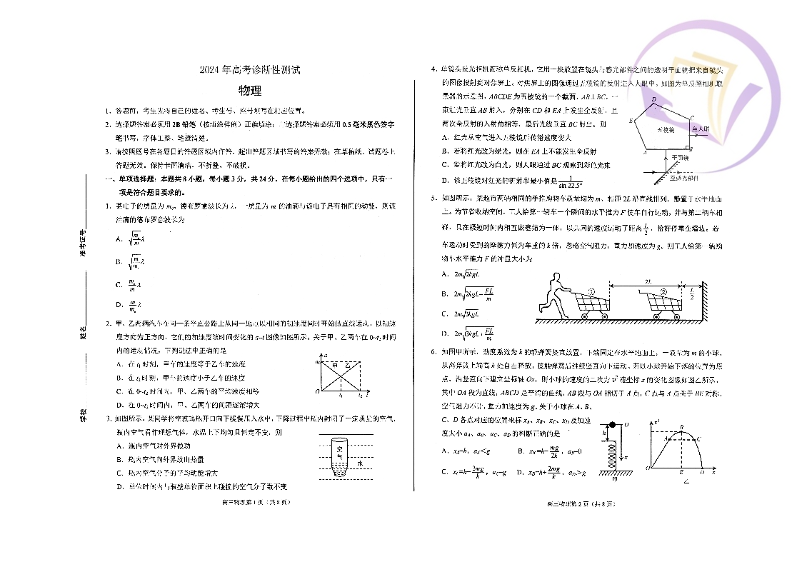 山东省烟台市2024.3高三年级第一次模拟物理