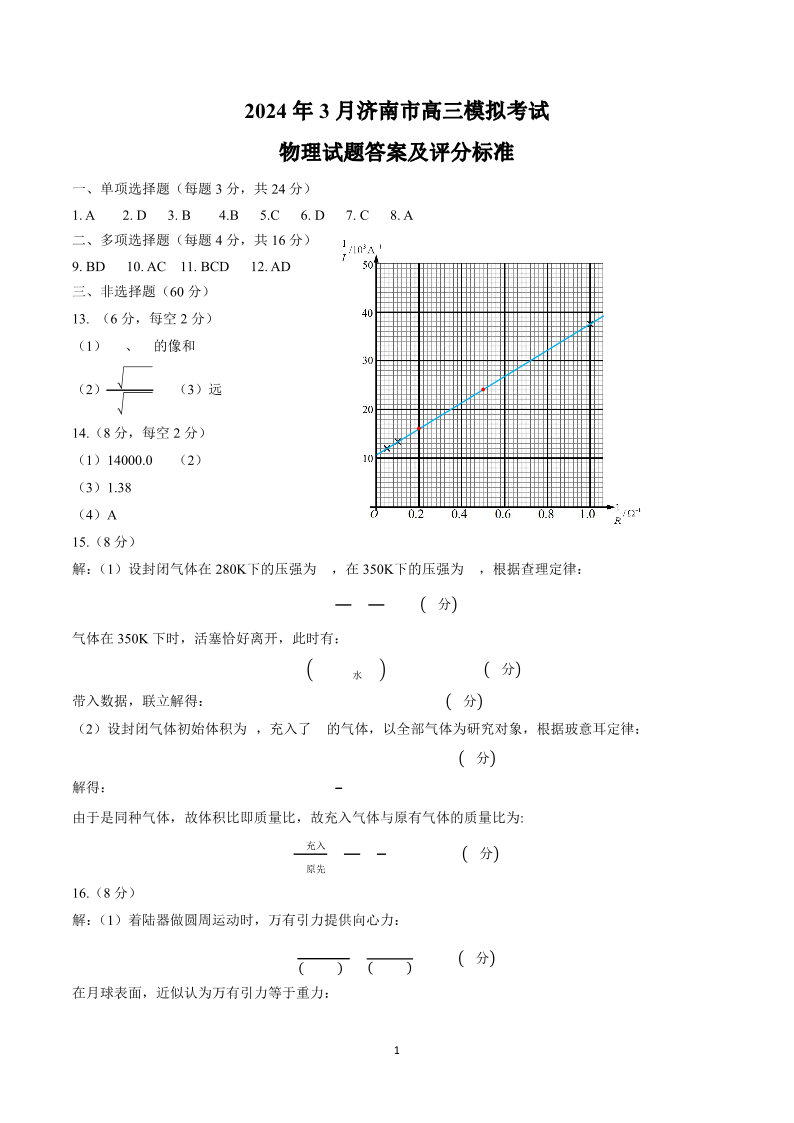 山东省济南市2024.3高三年级第一次模拟物理答案