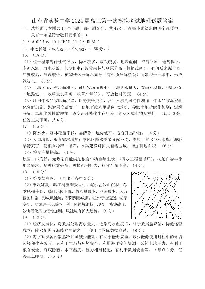 山东省实验中学2024.4高三年级第一次模拟地理答案