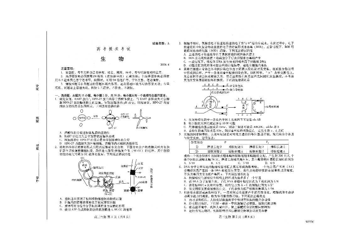 山东省潍坊市2024.4高三年级第二次模拟生物