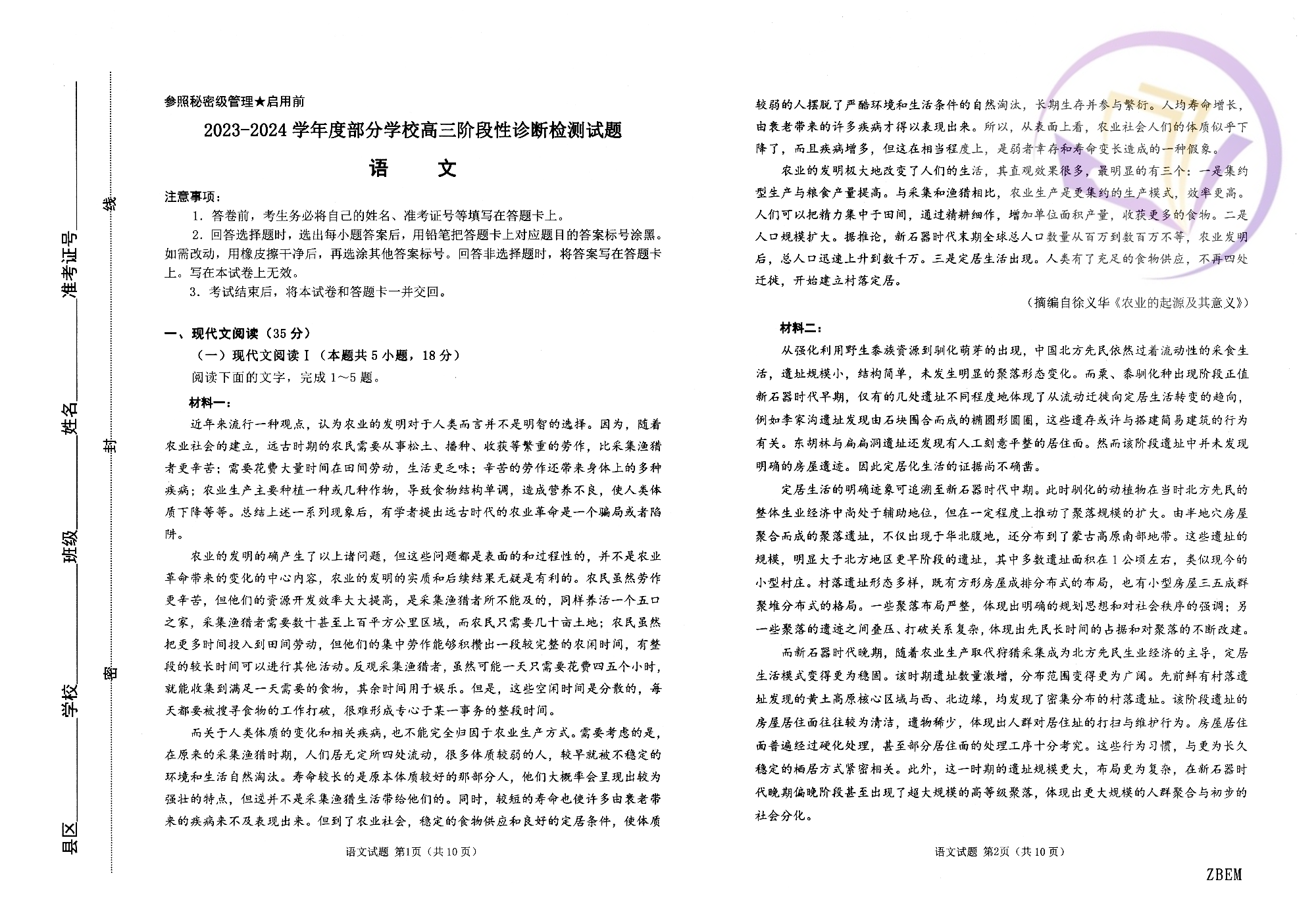 1山东省淄博市2024.4高三年级第二次模拟语文