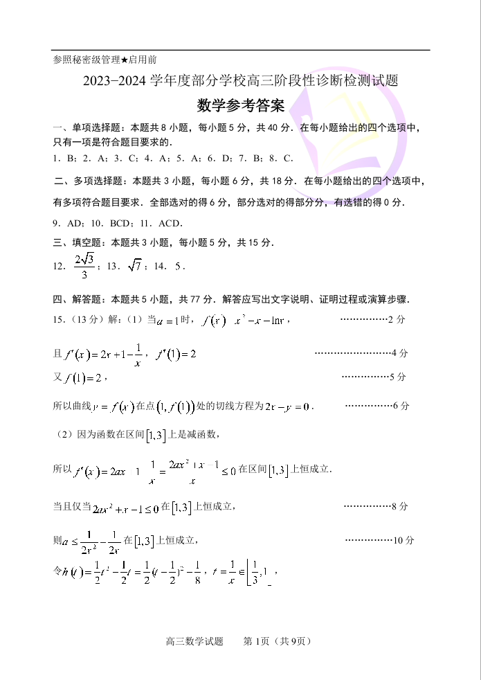 2山东省淄博市2024.4高三年级第二次模拟数学答案