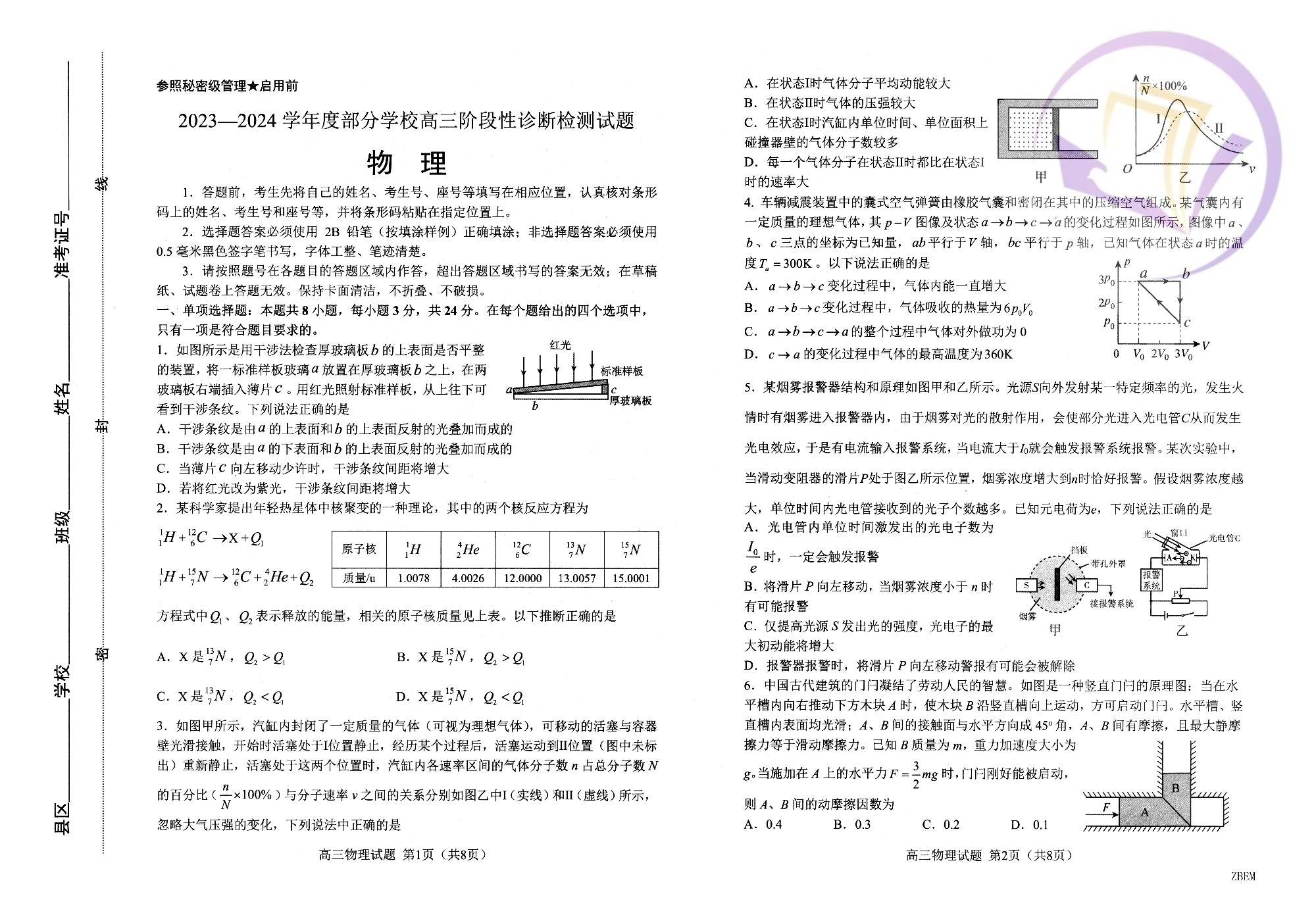 山东省淄博市2024.4高三年级第二次模拟物理