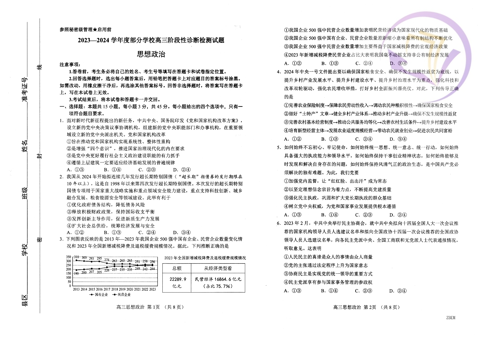 山东省淄博市2024.4高三年级第二次模拟政治