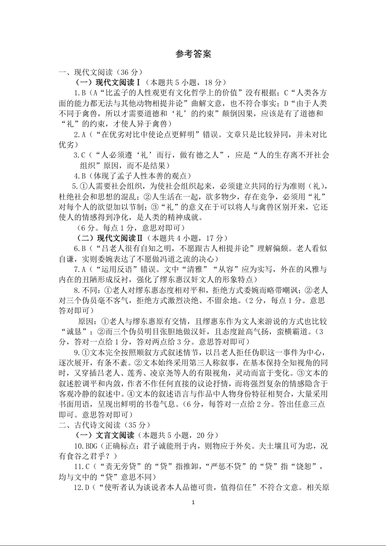 1山东省济宁市2024.4高三年级第二次模拟语文答案