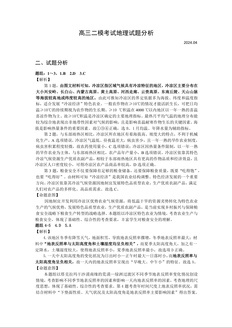 山东省济宁市2024.4高三年级第二次模拟地理答案