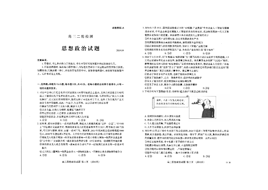 山东省泰安市2024.4高三年级第二次模拟政治