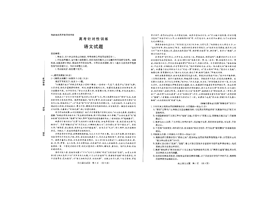 1山东省济南市2024.5高三年级第三次模拟语文