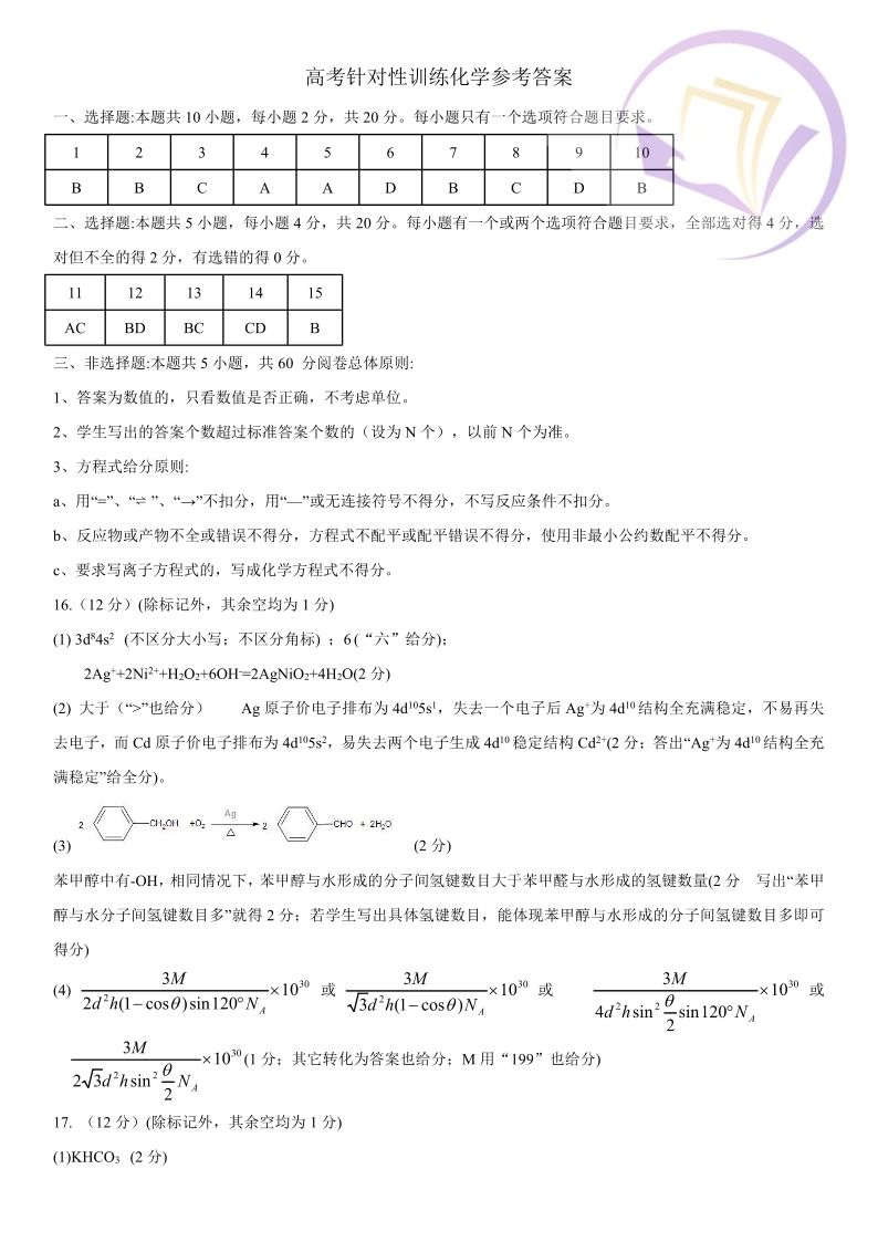 山东省济南市2024.5高三年级第三次模拟化学答案